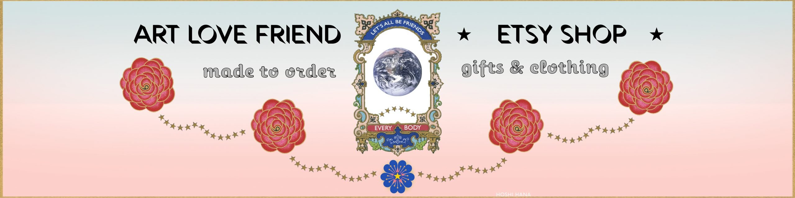Art Love Friend is an art experiment in building a brand around the theme of peace and love. Through print on demand, the shop offers apparel and art-inspired gifts made to order.